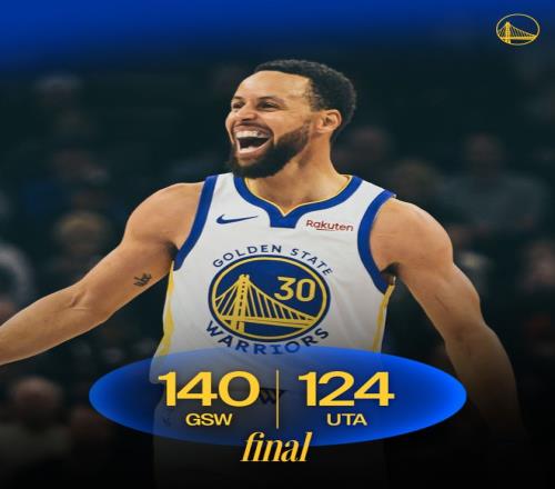 勇士8人上双力克爵士库里27分穆迪26+5基昂特乔治19+6+7