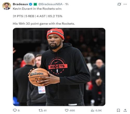 近五战场均31+6!37岁杜兰特又迎两里程碑火箭最硬之人是一老头