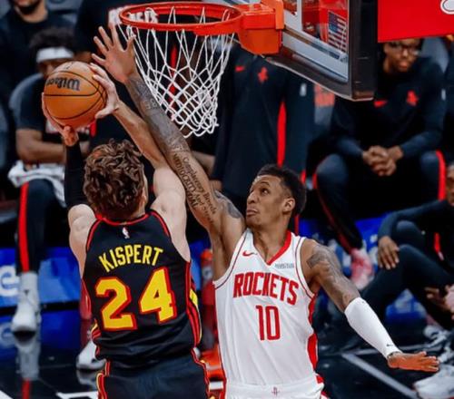 第四节决战,小贾巴里·史密斯反击不等落位直接冲筐暴扣得手,谢泼德抛传助飞卡佩拉人群中空接暴扣,随后外线开火连中三分,帮助火箭将分差拉开至20分,打停老鹰。比赛已无悬念,最终,火箭104-86狂胜老鹰18分,加上季前赛已经三杀老鹰了。