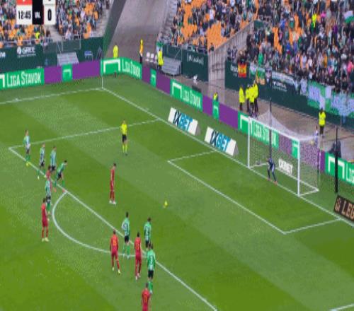 第23分钟,科佩特禁区犯规送出点球,路易斯-阿维拉点射命中,贝蒂斯1-1